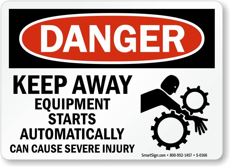 Use a "keep away equipment starts automatically can cause severe injury (with graphic)" sign.