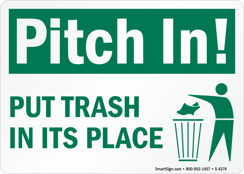 Use a "pitch in! put trash in its place (with graphic)" sign. Give safety a hand - with a sign.