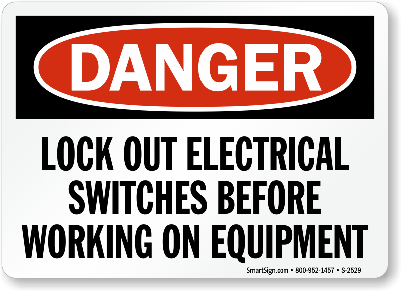 OSHA Danger Safety Sign : Lockout Electrical Switches Before Working On Equipment Sign S-2529
