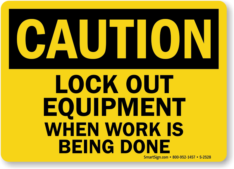 OSHA Caution Sign: Lock Out Equipment When Work Is Being Done S-2528