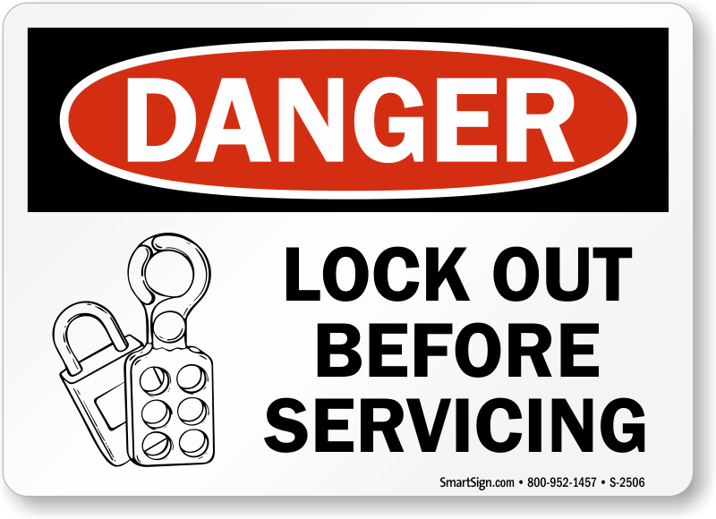Warn workers to lock out before servicing by posting this Danger Sign on your equipment.