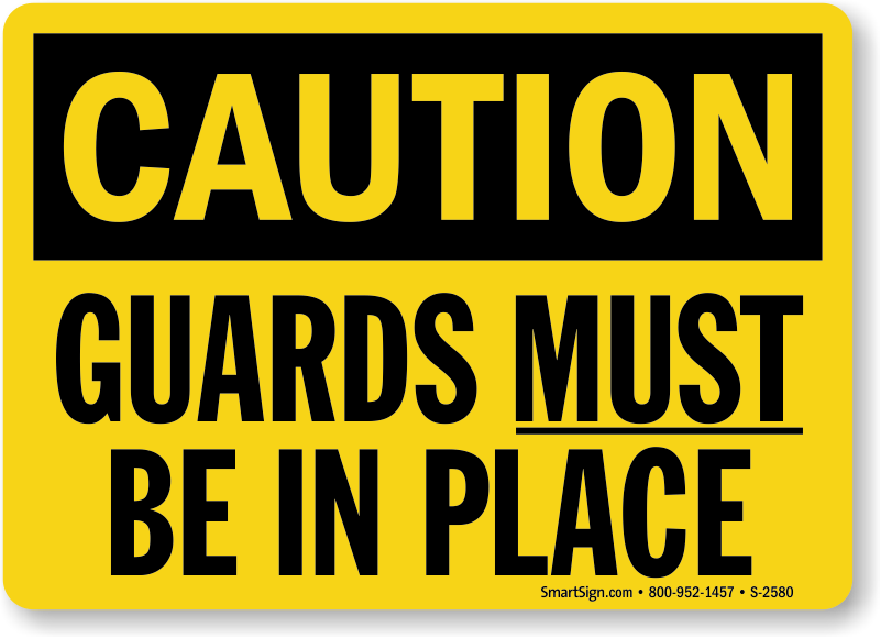 Use a "guards must be in place" sign. Signs work - and they show you care.