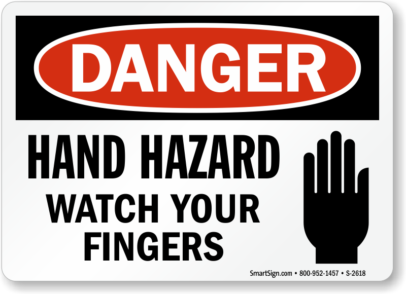 Use a "hand hazard watch your fingers (with graphic)" sign.