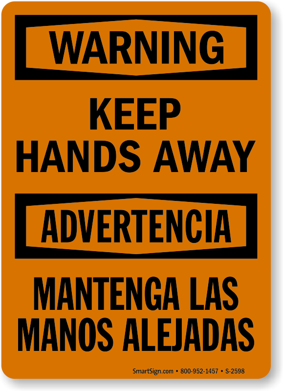 Bilingual OSHA Warning / Advertencia Sign: Keep Hands Away / Mantenga Las Manos Alejadas