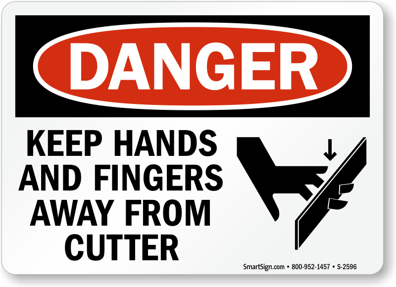 Use a "keep hands and fingers away from cutter (with graphic)" sign.