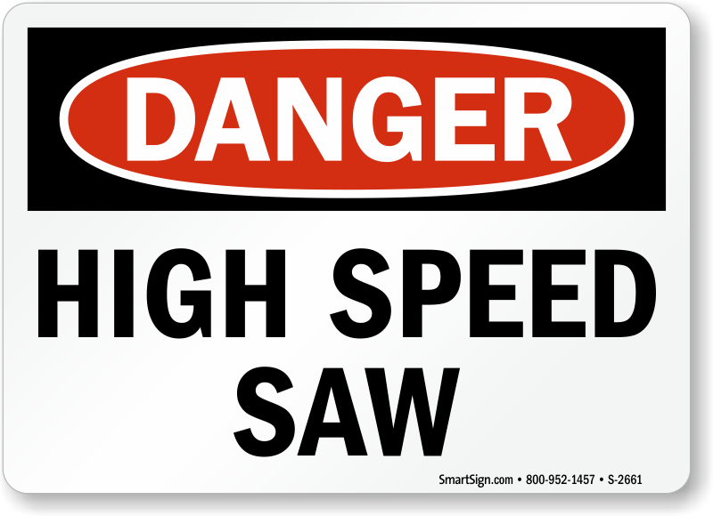 Keep everyone away from high speed saw by installing this high visibility danger sign in the vicinity.