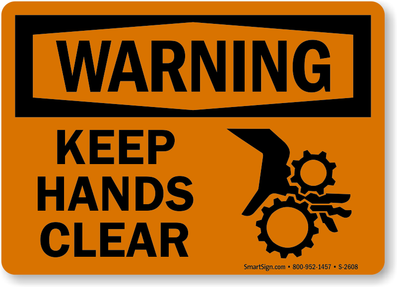 Use a "keep hands clear" sign. Demonstrate your commitment to safety.