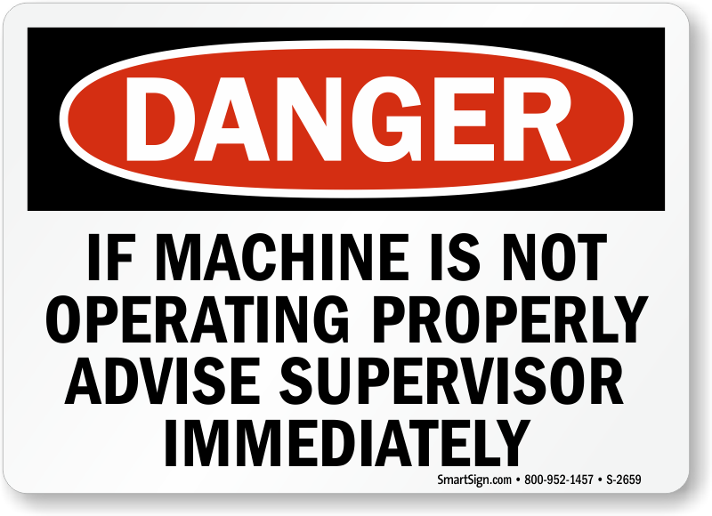 Use a "if machine is not operating properly advise supervisor immediately" sign.