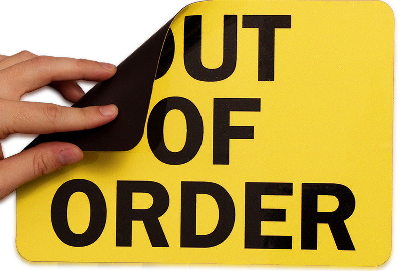Let workers know that the equipment is not functioning by installing this Out Of Order Machine Service Sign. Bold and clear legend offers high visibility and effectively sends your message across. Choose from our magnetic signs for hassle-free installation.