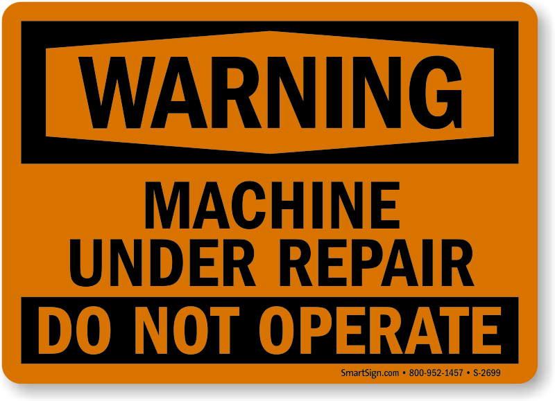 Keep employees alert. Use a "Machine Under Repair Do Not Operate" sign.
