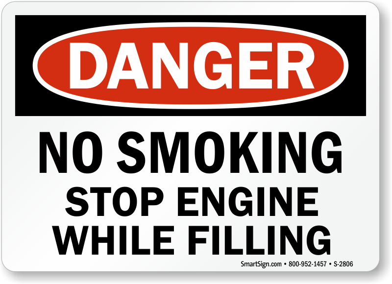 Use a "no smoking stop engine while filling" sign. A sign gets everyone's attention!