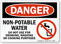 OSHA Danger Sign: Non-Potable Water - Do Not Use For Drinking, Washing Or Cooking Purposes