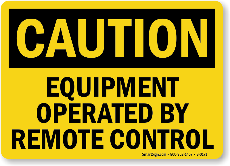 Keep employees alert. Use a "equipment operated by remote control" sign.