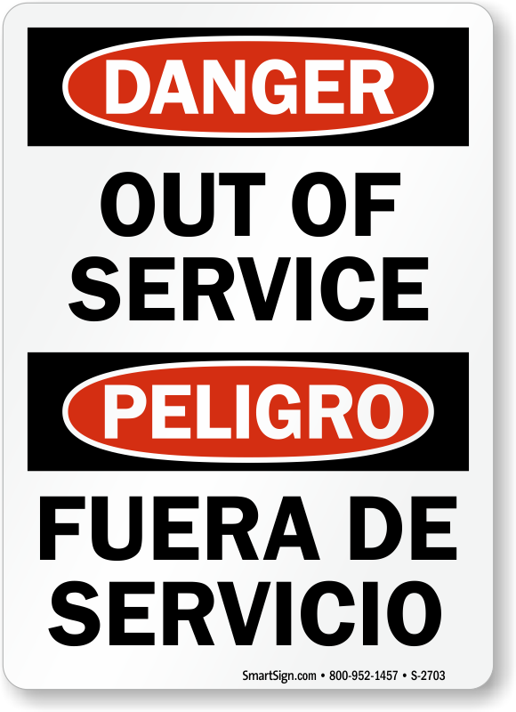 Bilingual OSHA Danger / Peligro Sign: Out Of Service / Fuera De Servicio