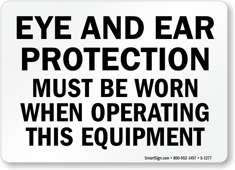 Safety equipment doesn’t help unless you wear it. Use a "eye & ear protection must be worn" sign. Remind everyone.