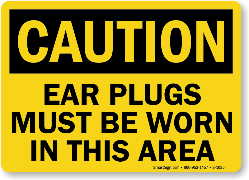 OSHA Caution Sign: Ear Plugs Must Be Worn In This Area S-1035