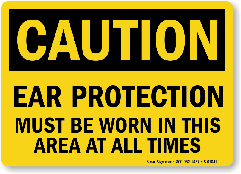 OSHA Caution Sign: Ear Protection Must Be Worn In This Area At All Times