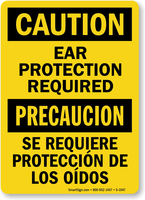 A "ear protection required " bilingual sign will help improve safety standards of your workplace.