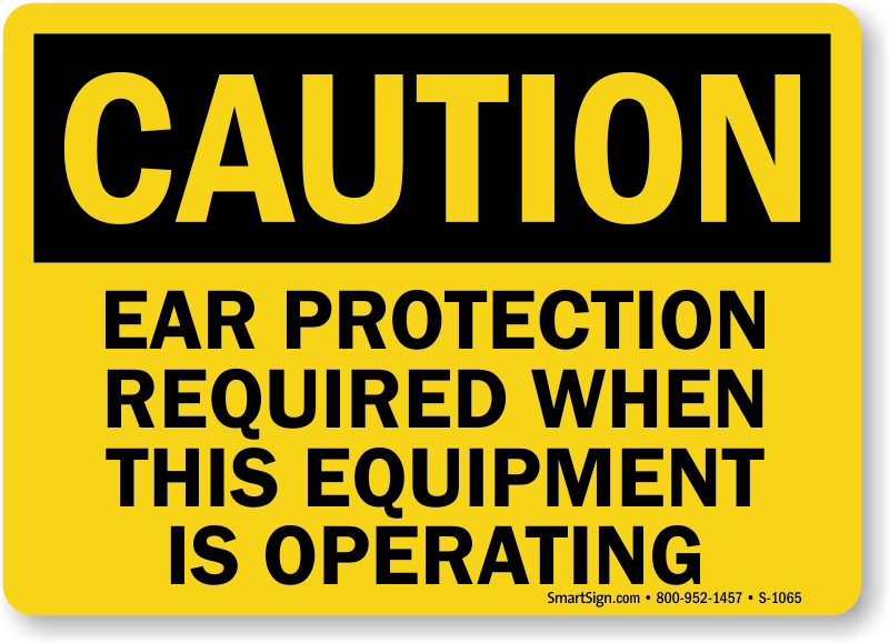 OSHA Caution Sign: Ear Protection Required When This Equipment Is Operating