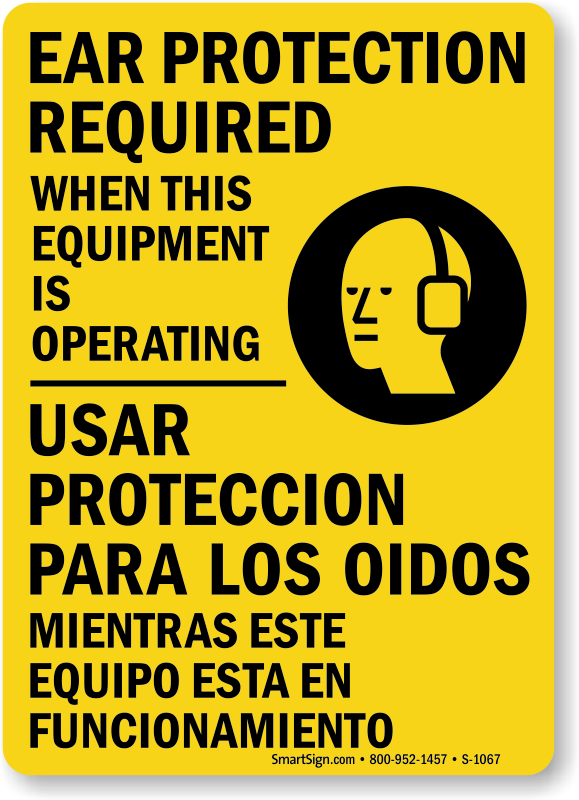 Use a "ear protection required when this equipment is operating (with graphic) (bilingual)" sign.