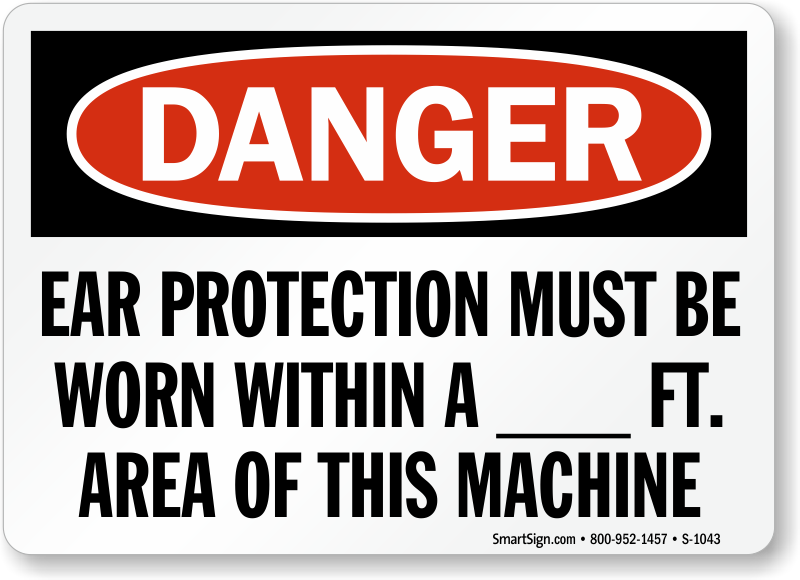 OSHA Danger Sign: Ear Protection Must Be Worn Within A ___ Ft. Area of this Machine S-1043