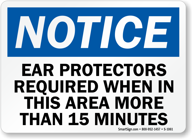OSHA Notice Sign: Ear Protectors Required When In This Area More Than 15 Minutes S-1061
