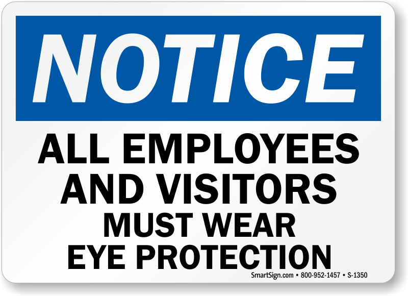 A notice reminds everyone about your policy. Use a "all employees and visitors must wear eye protection" sign.