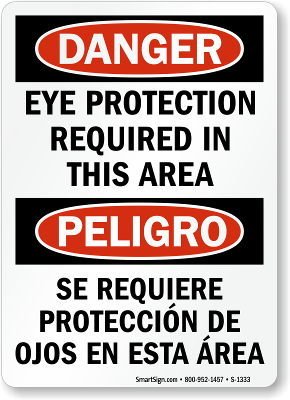 Bilingual OSHA Danger / Peligro Sign: Eye Protection Required In This Area / Se Requiere Protección De Ojos En Esta Área
