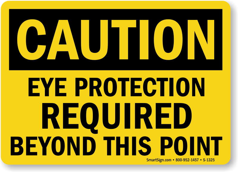 Don't be shy about eye protection. Use this bold black and yellow sign to remind workers to always wear goggles in required areas.