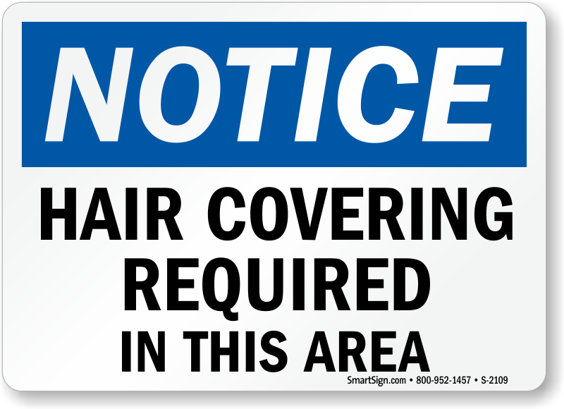Use a "hair covering required in this area" sign. Appealing and durable.