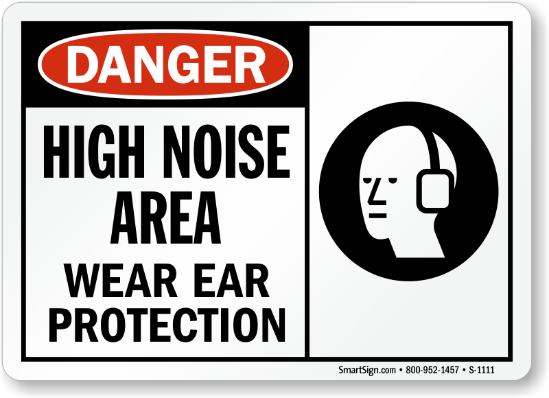 Ear Protection Safety Sign: Danger High Noise Area Wear Ear Protection (with Graphic)