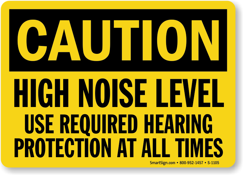 Use a "high noise level use required hearing protection at all times" sign. Comply with safety laws and improve your working environment.