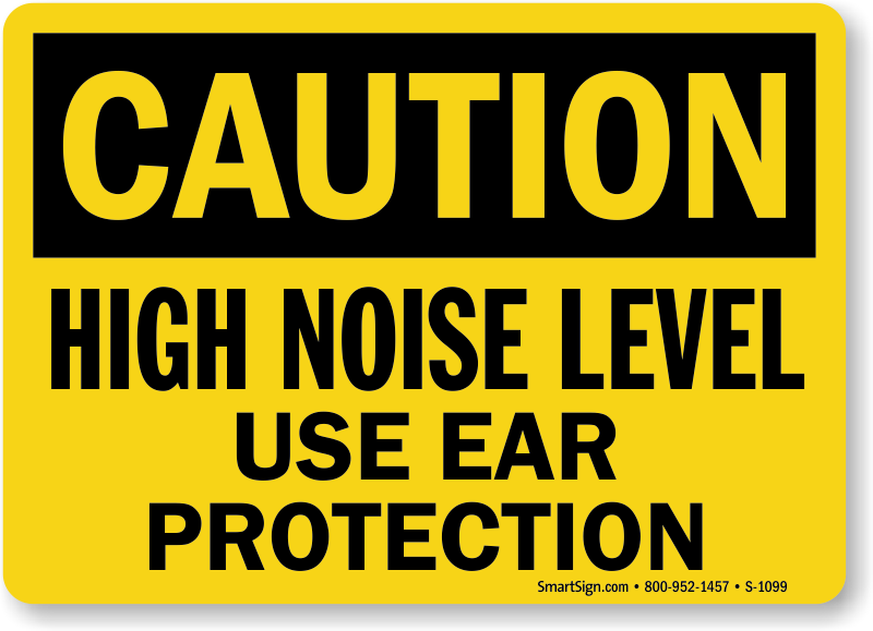 Use a "high noise level use ear protection" sign.