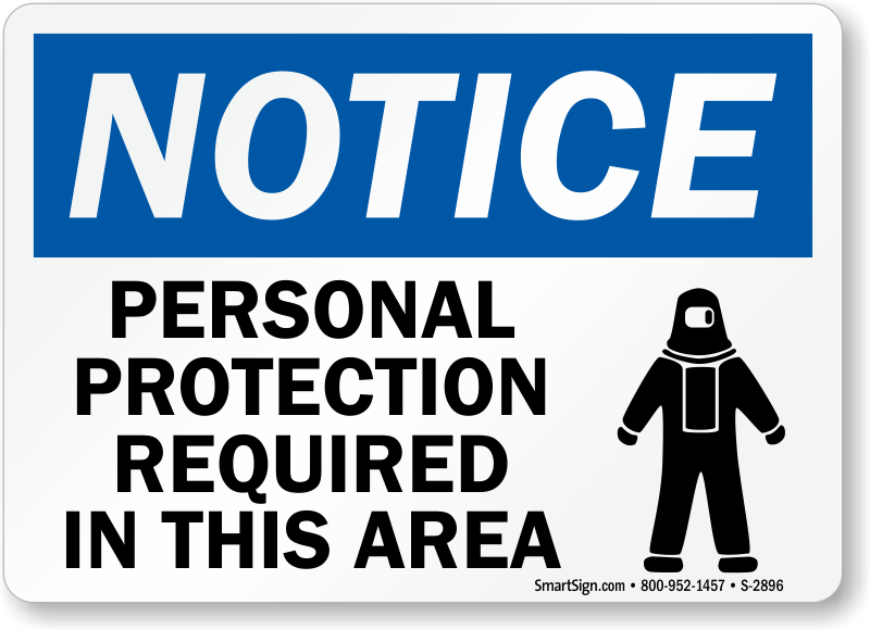 Use a "personal protection required in this area (with body suit graphic)" sign. Signs are a constant reminder.