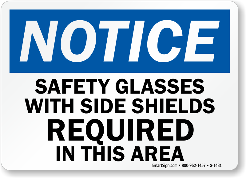 OSHA Notice Sign: Safety Glasses With Side Shields Required In This Area