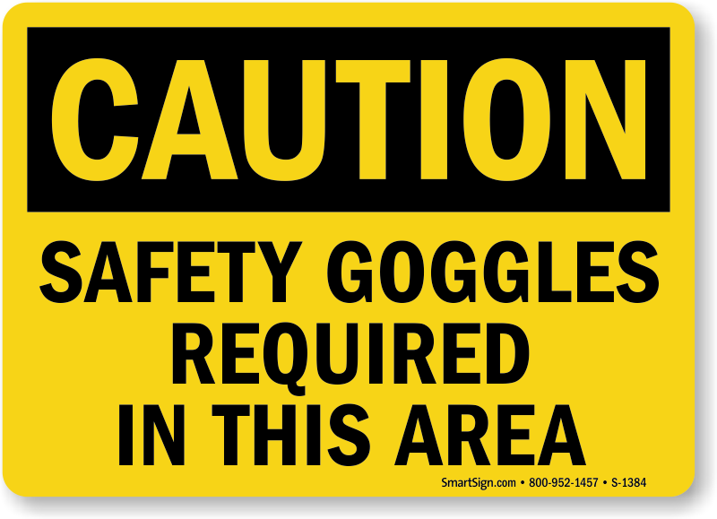 OSHA Caution Sign: Safety Goggles Required In This Area S-1384