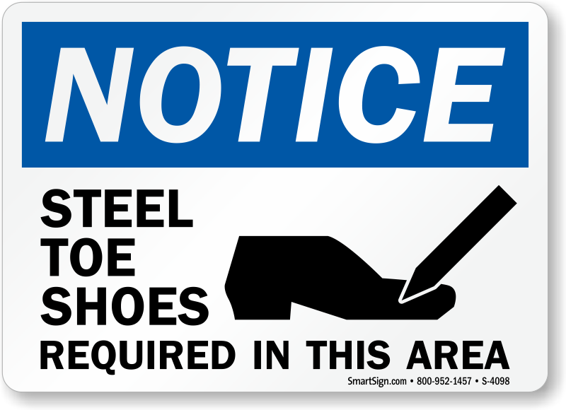 OSHA Notice Sign: Steel Toe Shoes Required In This Area