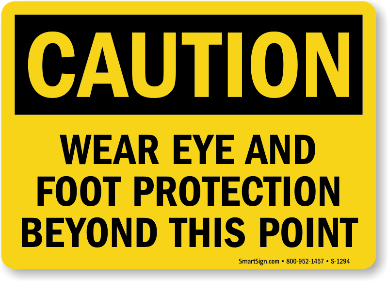 Follow OSHA's PPE standards and protect your toes with this black and yellow caution sign.