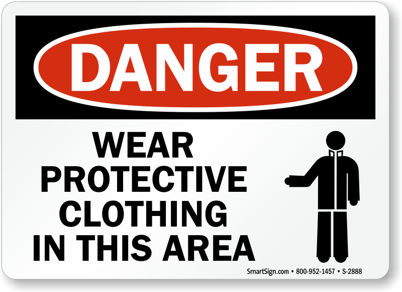 Use a "wear protective clothing in this area" sign. Promote the value of safety.