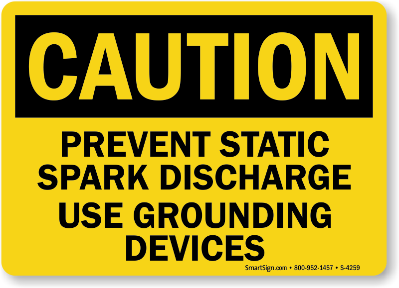 Use a "prevent static spark discharge use grounding devices" sign.