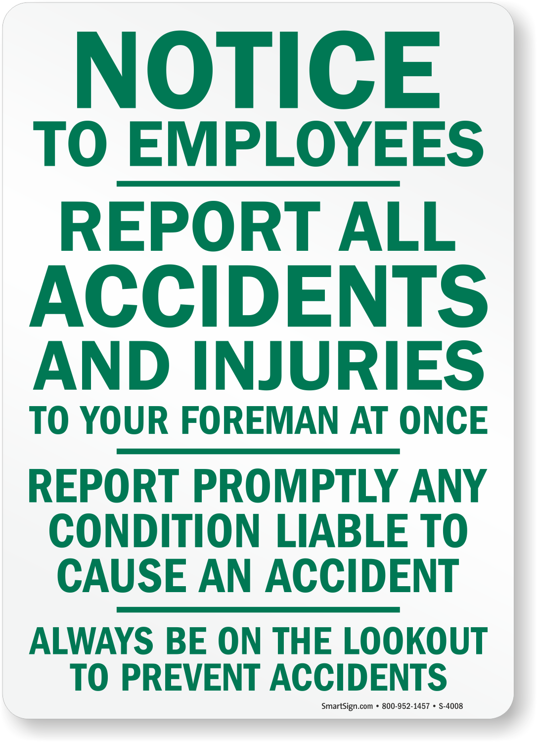 Respond properly to accidents. Use a "report all accidents and injuries to your foreman" sign. Establish a reminder.