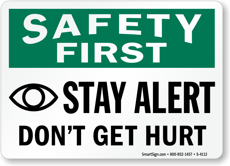 OSHA Safety First Sign: Stay Alert Don't Get Hurt