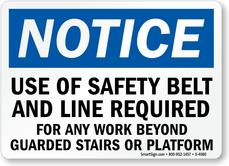 Use a "use of safety belt and line required for any work beyond guarded stairs or platform" sign.