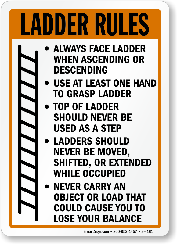 Ladder Safety Sign: Ladder Rules Always Face Ladder When Ascending Or Descending Use At Least One Hand To Grasp Ladder Top Of Ladder Should Never Be Used As A Step Ladders Should Never Be Moved,... S-4181