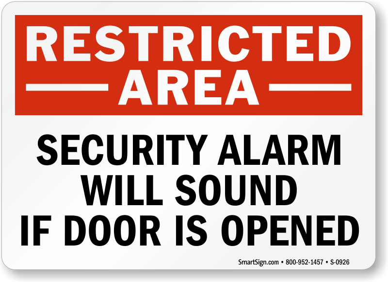Improve security by installing this vibrant Security Alarm Will Sound If Door Is Opened sign. Signs work and they show you care.