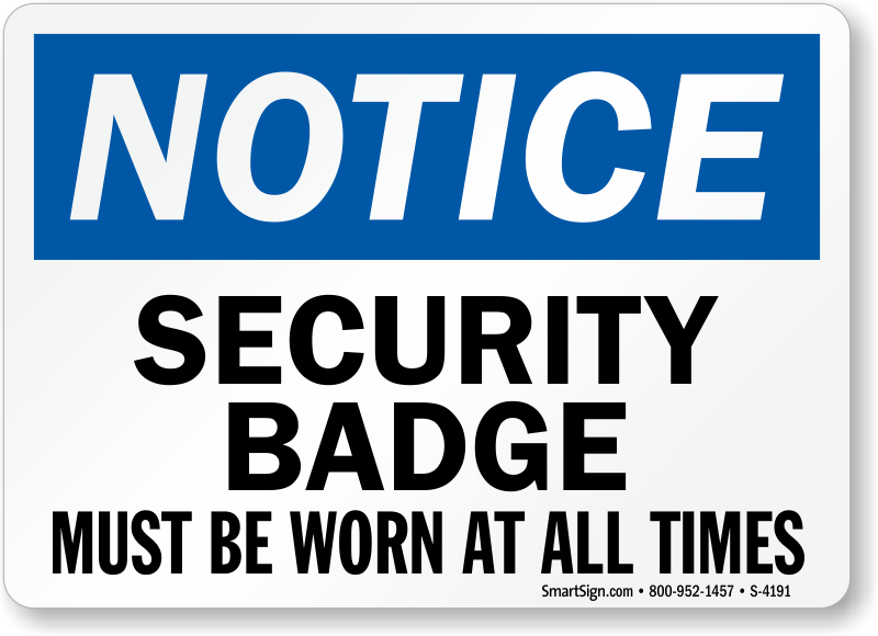 Use a "security badge must be worn at all times" sign.
