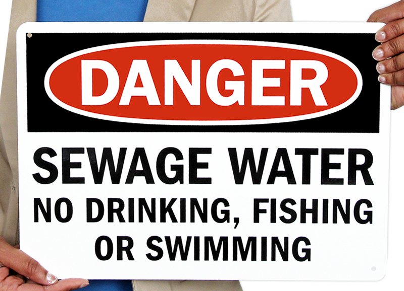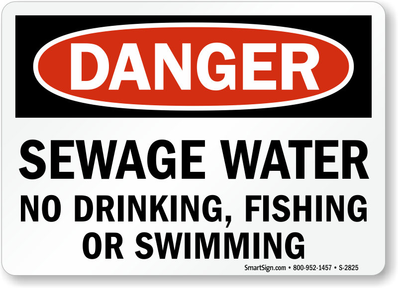 Use a "sewage water no drinking, fishing or swimming" sign.