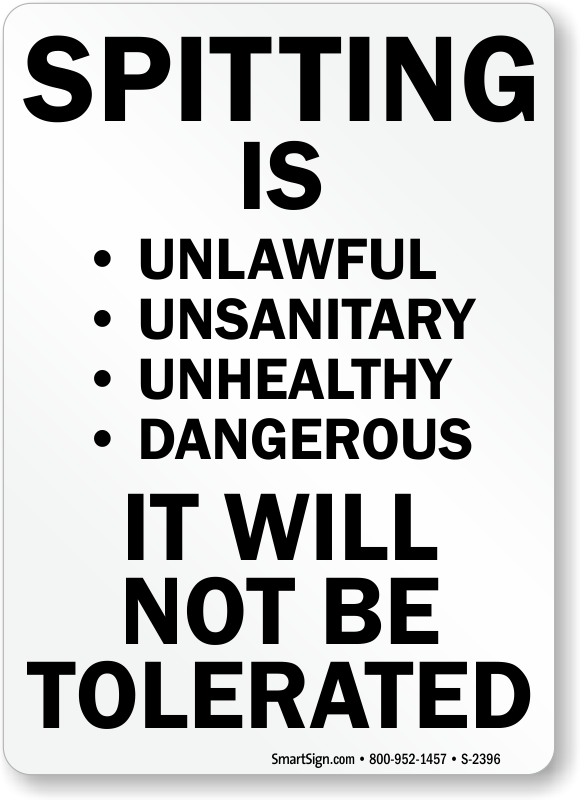 Housekeeping Clean Signs Label: Spitting Is Unlawful Unsanitary Unhealthy Dangerous It Will Not Be Tolerated