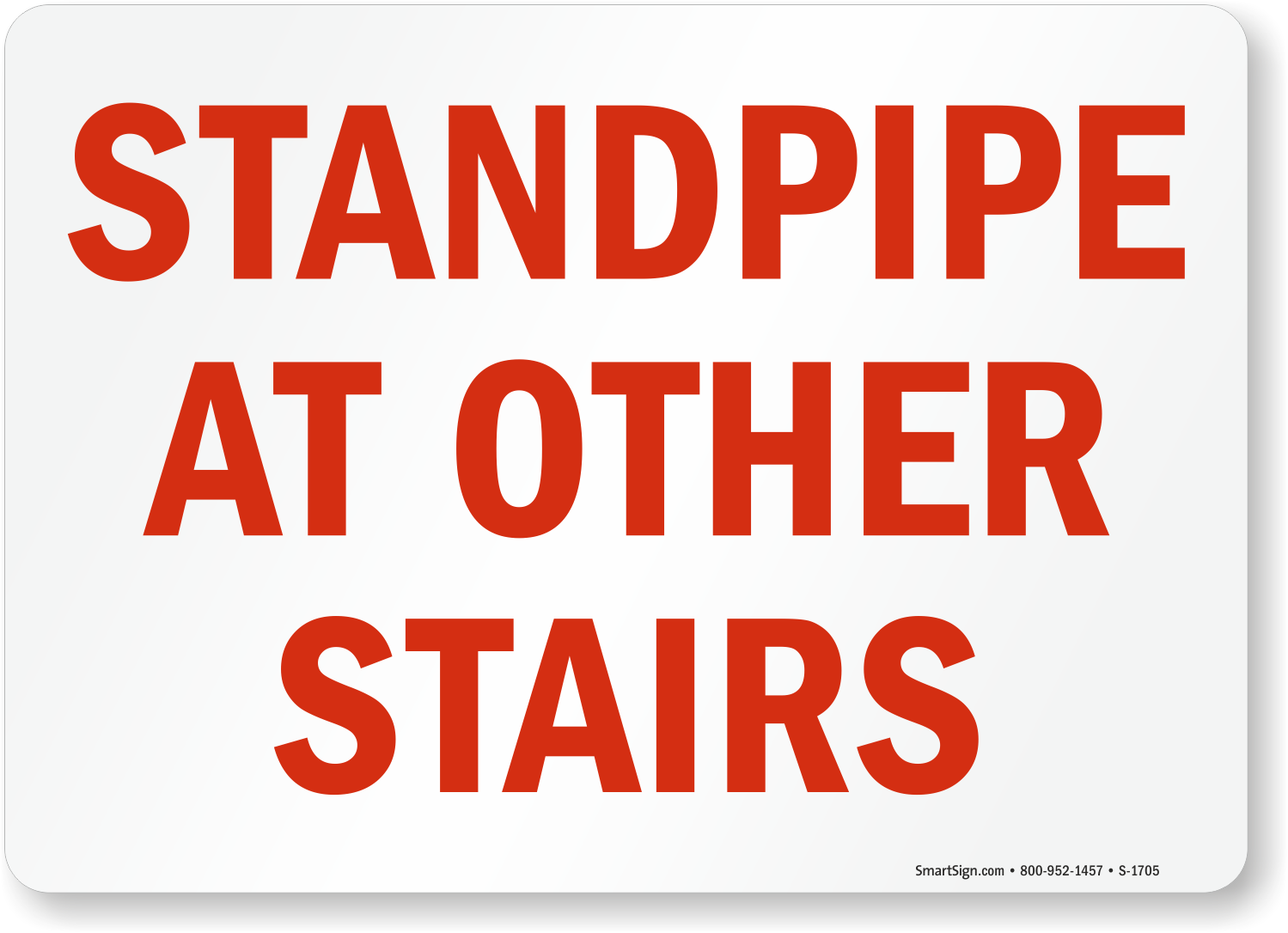 Comply with fire safety laws. Use a "standpipe at other stairs" sign. Prepare for emergencies.