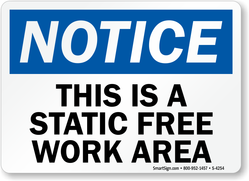 OSHA Notice Sign: This Is A Static Free Work Area S-4254